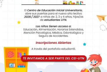 Estimados estudiantes de la UTN: El Centro de Educación Inicial Universitario abre sus puertas para el nuevo año lectivo 2026–2027. Inscripciones abiertas en el siguiente enlace: